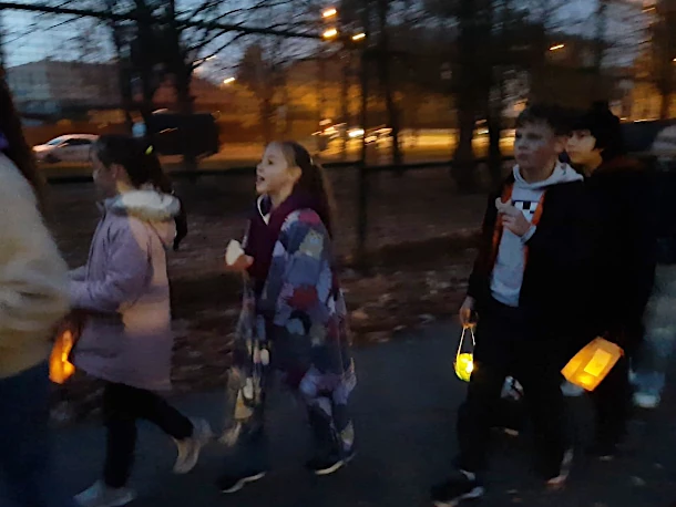 A 4.a osztály Márton-napi lámpás felvonulása.