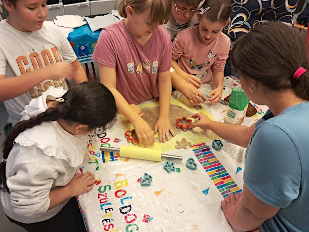 A karácsonyt megelőző időszakban a 4. b osztály különleges programon vett részt: közösen mézeskalácsot sütöttünk. A foglalkozás célja az volt, hogy a gyerekek együtt készülődjenek az ünnepre, miközben egy vidám, alkotó tevékenység során erősödik az osztályközösség és a szülőkkel való együttműködés is.