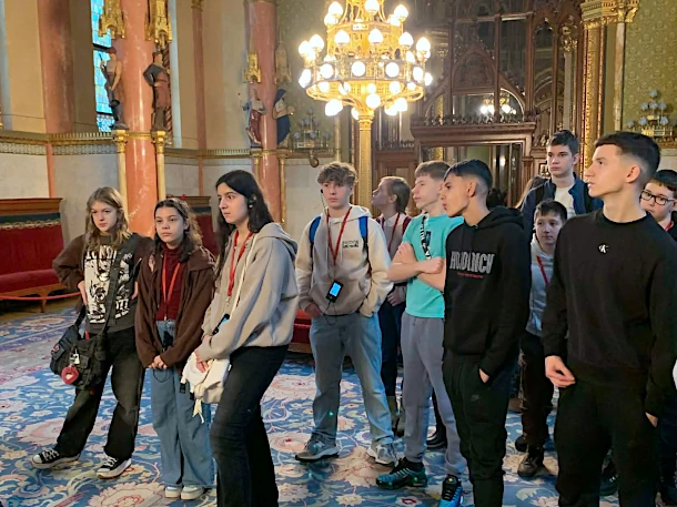 December 10-én lehetőséget kaptunk az Országház meglátogatására, amely a szlovén csapatnak is hatalmas élmény volt, hisz Ljubljanában a parlament épülete kevésbé monumentális és dekoratív, mint nálunk. Főleg a rengeteg aranybevonat nyűgözte le őket.