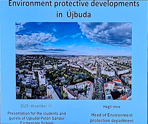 December 11-én délelőtt Újbuda Önkormányzata fogadott bennünket a projektünkhöz kapcsolódó előadással, melynek címe: „Újbuda zöld programjai”, ahol bemutatták a kerület tevékenységét, terveit a környezettudatosság jegyében.