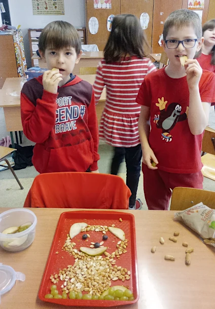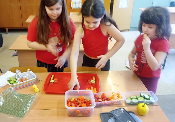 A 2.b osztály zöldség-gyümölcs tálat készített.
