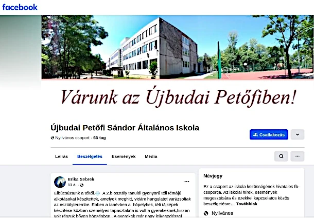 Szeretnénk tájékoztatni Önöket, hogy az Újbudai Petőfi Sándor Általános Iskola Facebook csoport oldala aktív, folyamatosan frissítjük a tartalmakat. Az oldalon rendszeresen megosztjuk: