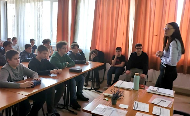 Az OTP Bank egyik munkatársa járt nálunk, aki a Pénz7 keretében a biztosítások témakörében tartott foglalkozást a felsős évfolyamoknak.