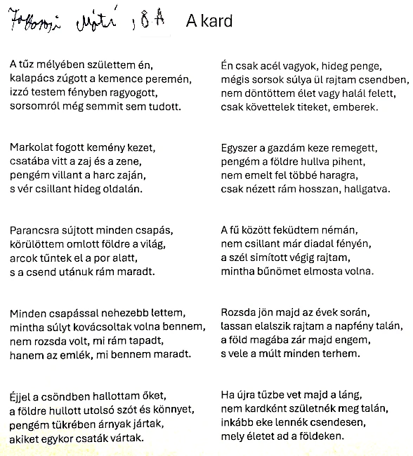 A 2026-os Petőfi Hét keretében versíró versenyt hirdettünk, melyre szabadon választott témában vártuk a pályamunkákat 3-4., illetve 5-6-7-8. évfolyamos tanulóktól. Nagyszerű versek érkeztek a pályázatra, melyek közül a nevelőtestület szavazatai alapján, alsó és felső évfolyamokon a legjobbnak ítélt versek alkotói jutalomban részesültek. A verseket kiállítottuk, elolvashatók az aulában.